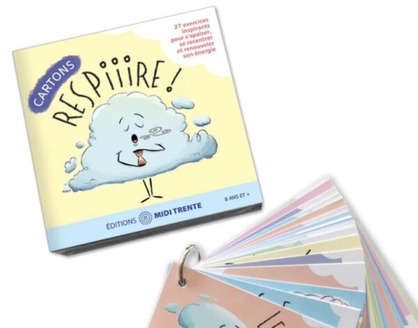 Ces cartons psychoéducatifs illustrés présentent 27 exercices de respiration librement inspirés de techniques utilisées en cohérence cardiaque, en yoga et en méditation en pleine conscience. Des nuages y invitent les jeunes à découvrir leurs trucs préférés pour bien respirer.